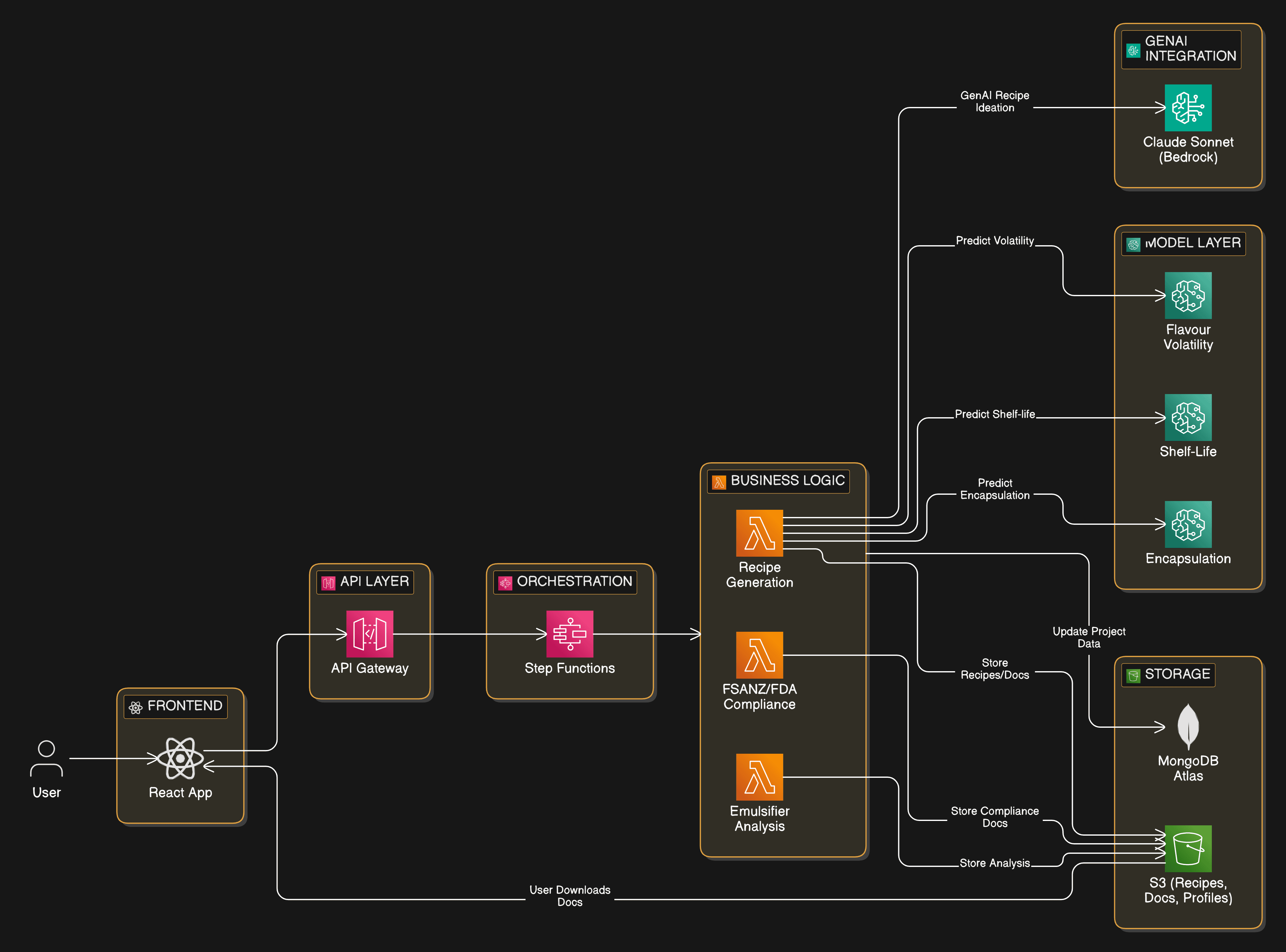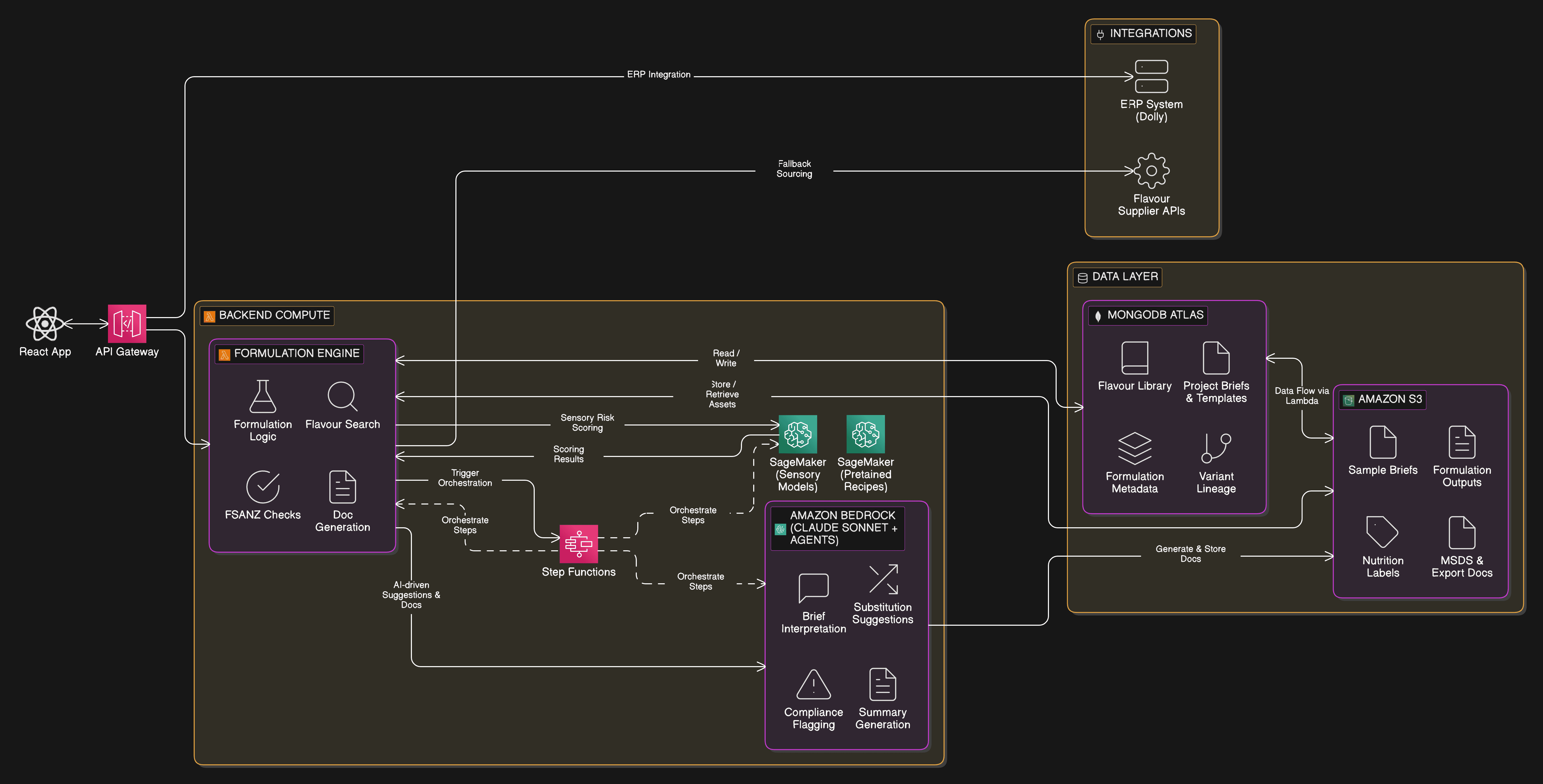 AWS Lambda to power serverless logic for formulation and compliance tasks.